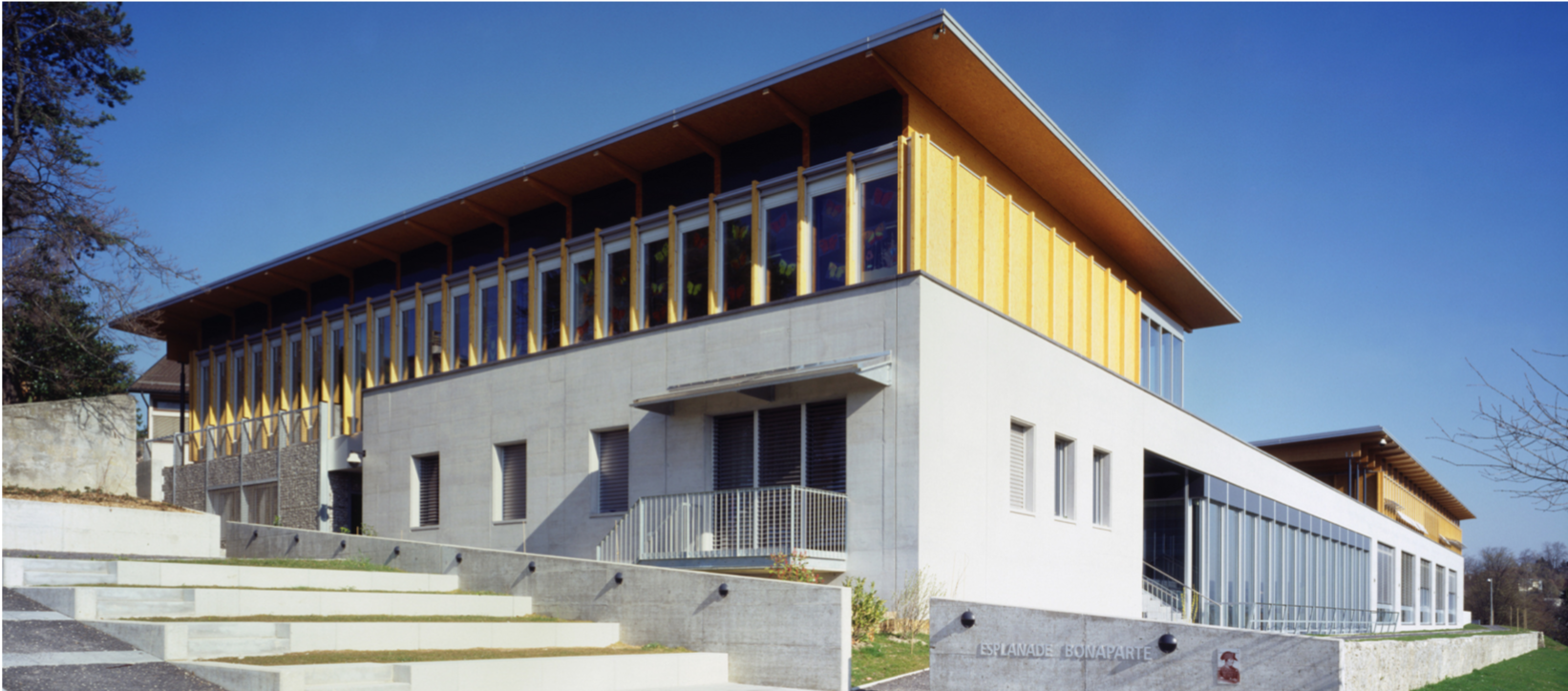 Le complexe est labellisé Minergie. Le mandat est le résultat d’un concours organisé par la commune d’Ecublens en 2000.